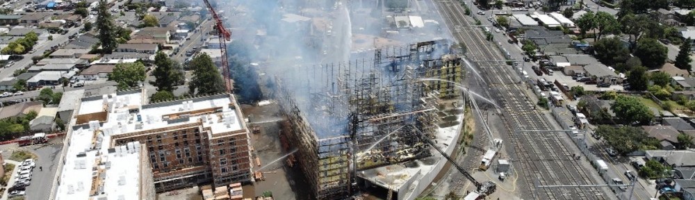 Thankfully, that building, along with the nearby homes and the Fair Oaks Health Center, which stands between this project and Middlefield Road, seem to have escaped the fire pretty much unscathed. Kudos not only to the many fire personnel who worked this eight-alarm fire, but also to the various county sheriffs who both evacuated those people living and working nearby and who helped manage the scene.