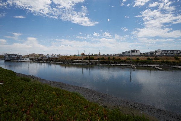 Note that the one floating home you can see in the above picture has not been lived in for some time, and is boarded up (I believe it is the property of Redwood City, and is slated for destruction, or, if the city can find someone to buy it, for sale). Other than that, I counted just four other boats, only one of which — the one to the far right — might still have an occupant. Other than the five I saw, along the length of Redwood Creek from this point out to Highway 101, there are no boats of any kind, and only a handful of empty slips: