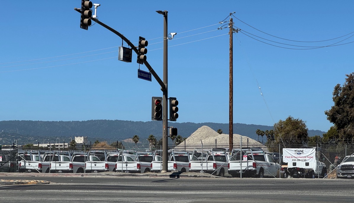 These particular vehicles are Ford trucks and vans that are for sale through Towne Ford’s Fleet and Commercial Vehicles operation. Other vehicles are, for now at least, parked at the corner of Blomquist and Maple streets, on the parcel where until recently Redwood City hosted a safe parking lot for RVs.