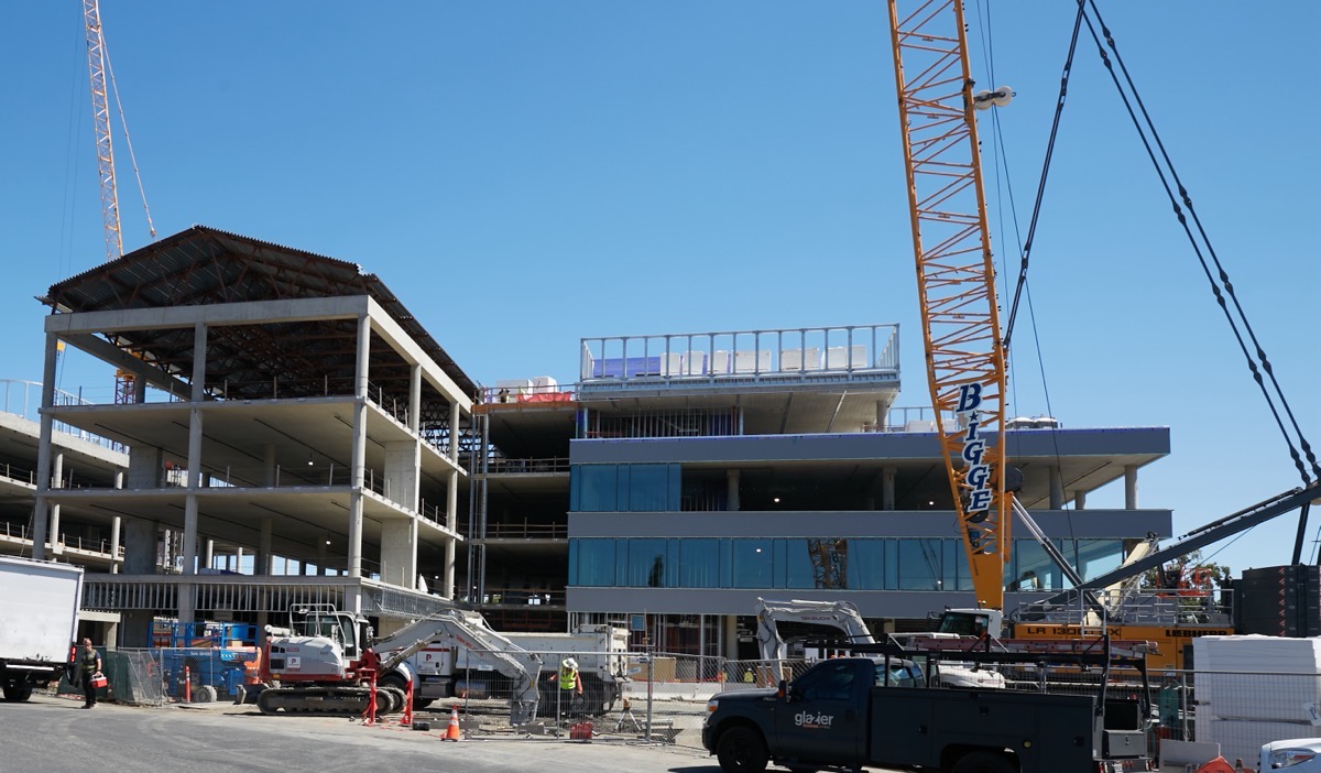 Before lunch on that day (while it was not yet uncomfortably hot) I took a spin through the ELCO Yards project, and was impressed by the amount of progress the work crews are making. Most of you have probably seen the brick facade that is being applied to the office building out on El Camino Real, since all you need do is drive by:
