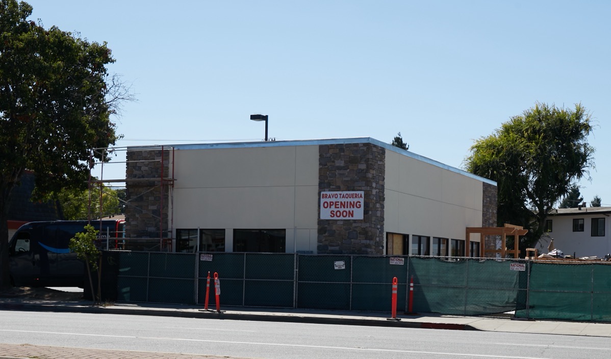 At 980 Woodside Rd., Bravo Taqueria should soon reopen in their previous location (but in a drastically remodeled building):