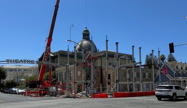 Downtown, at the corner of Marshall Street and Middlefield Road, the Taube Family Carriage House and Automobile Gallery is zooming along, at least for now: a lot of steel is going up, and that stuff can be erected and bolted together pretty quickly: