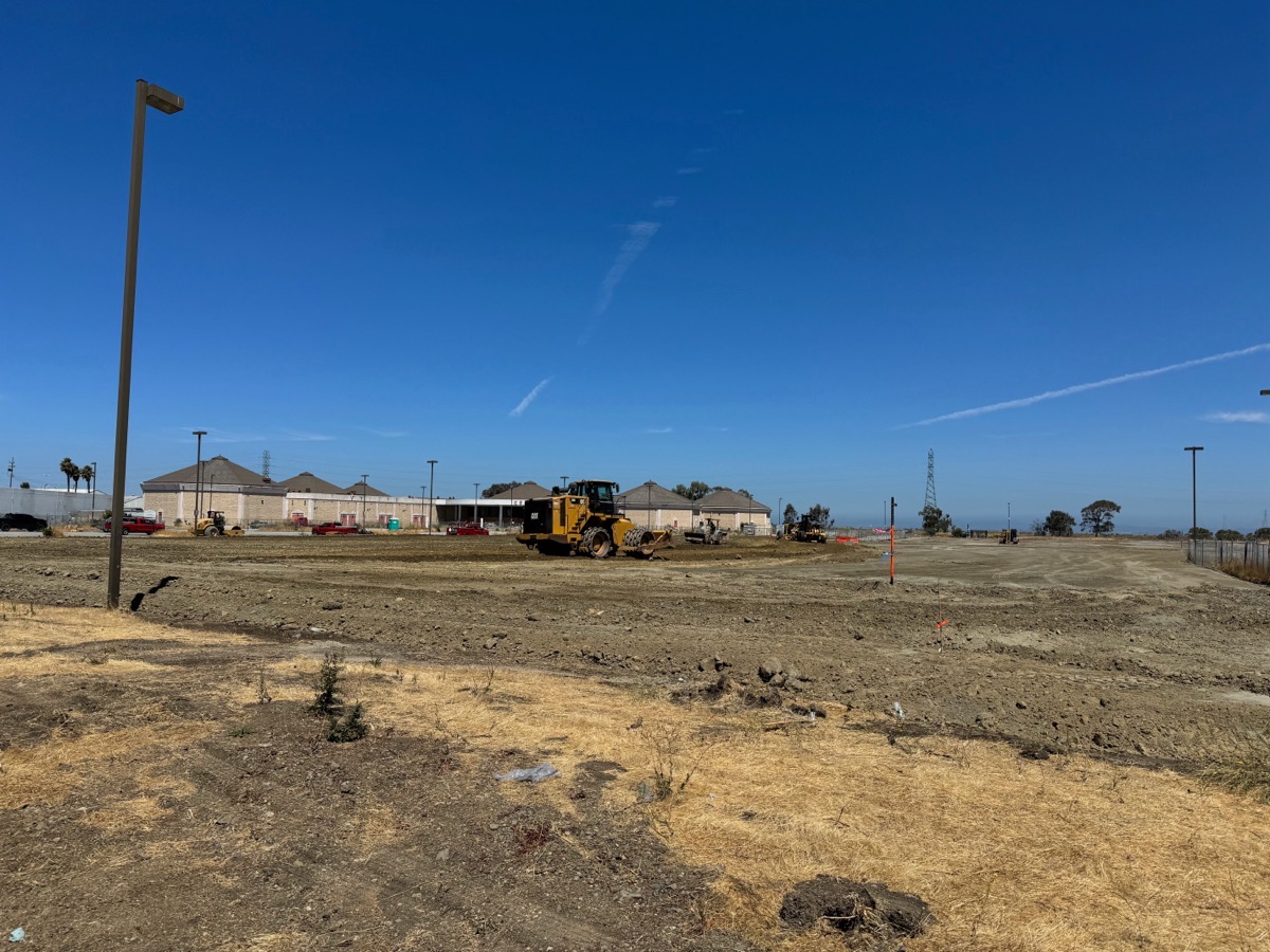 Elsewhere in the city, I spent a fair amount of time watching as a steady stream of trailer trucks hauled soil onto the Century Park 12 Theaters site (557 E. Bayshore Rd., across Highway 101, amid the automobile dealerships) and dumped it, followed by various pieces of heavy equipment that spread the soil out. It seems that work has begun to raise at least part of the site to counter sea-level rise. Although why they are only doing a portion of the parking lot at the moment and not waiting until they’ve torn down the old theater building and the remainder of the parking lot — which also will have to be raised — I don’t know.