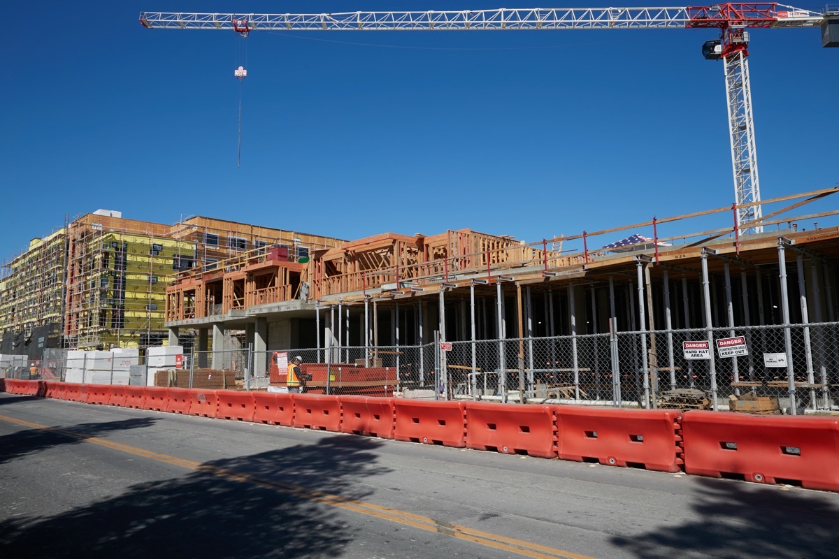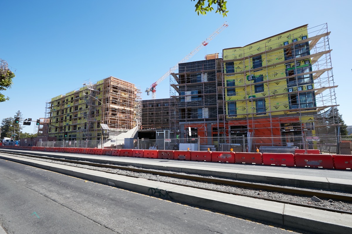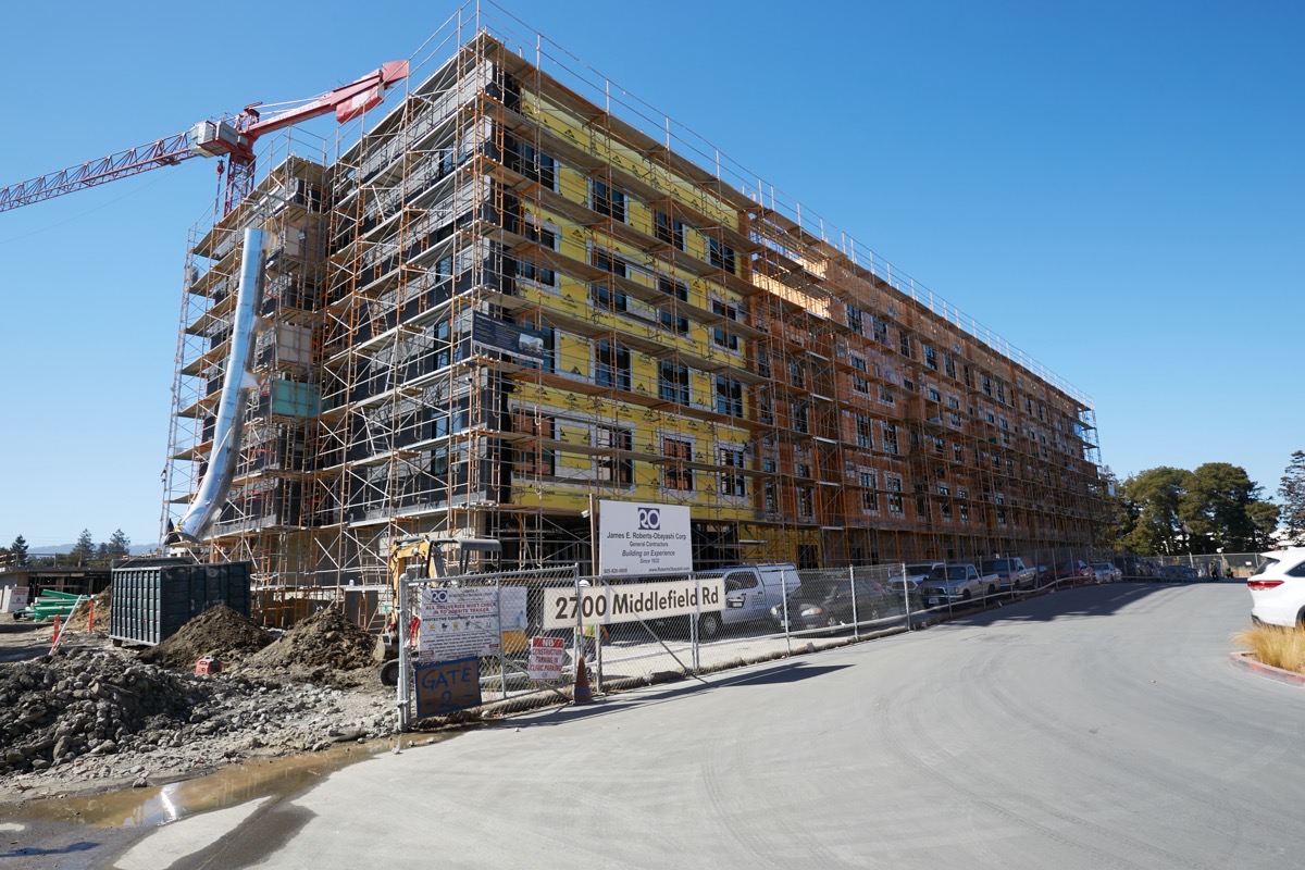On Monday my wife needed to head down to Sigona’s Farmer’s Market, so I took advantage of the fact that she was going to be most of the way towards one of the places I wanted to walk to this week, and hitched a ride. From the produce market it was a relatively short walk down Middlefield Road to 2700 Middlefield Rd., the site of Middlefield Junction, the Mercy Housing’s 179-unit affordable housing project that four months ago experienced a massive fire. I previously visited the site shortly after the fire took place to see what was left, and was pleased to note that although one of the buildings was almost completely destroyed, the other one was seemingly unscathed. Given that it has been four months since the fire occurred, I wanted to see if the project was once again making forward progress.