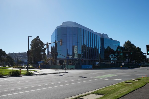 Those buildings are long gone, now. In their place is a large (200,000-square-foot) five-story office building clad almost entirely in glass:
