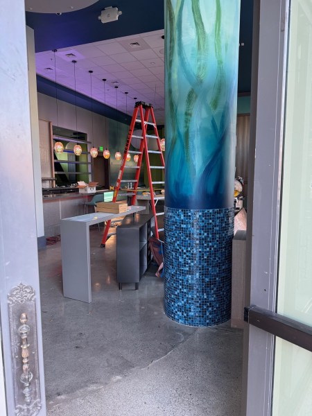 As you can see, the interior is looking close to done (and looks great!). With that one window now repaired, hopefully the trim around it and the adjoining sidewalk doors can now be applied, finishing the exterior of this new (to Redwood City) restaurant that’s taking The Old Spaghetti Factory’s former space. Ocean’s website still doesn’t indicate just when they think the restaurant might open, but hopefully it can do so soon — perhaps this month.