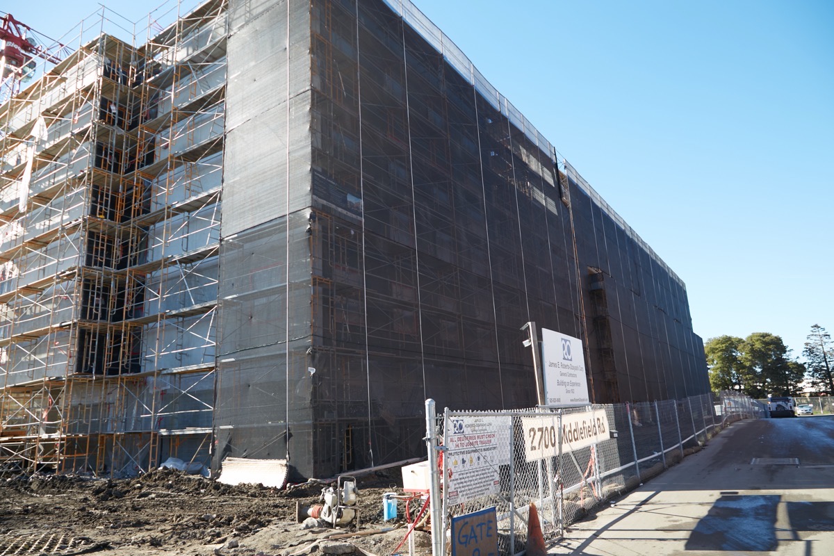 The current goings-on in LA right now reminded me of the fire that destroyed half of the Mercy Housing affordable housing project that had been underway at Redwood Junction, along Middlefield Road just south of the Redwood City border. Accordingly, I went by earlier today to check on the progress of that project, and was delighted to see that the one building that survived the fire unscathed is making great progress: it appears to be getting its exterior stucco applied right now.