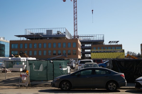 Building C — the larger of the two un-leased buildings — currently looks like this from Elm Street near Main (I actually took this photo while standing on the sidewalk by the CZI headquarters building):