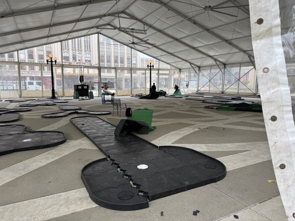 This week I also walked through downtown. The large tent structure has once again been erected over Courthouse Square, and it seems that very soon we’ll once again be playing miniature golf inside: