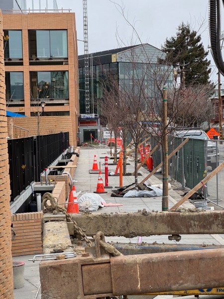 Back at the other end of Vera, out at El Camino, I poked around the ELCO Yards project somewhat. It’s a good sign of progress that the trees are already being installed in the wells in the sidewalk (these ones along Cedar Street):