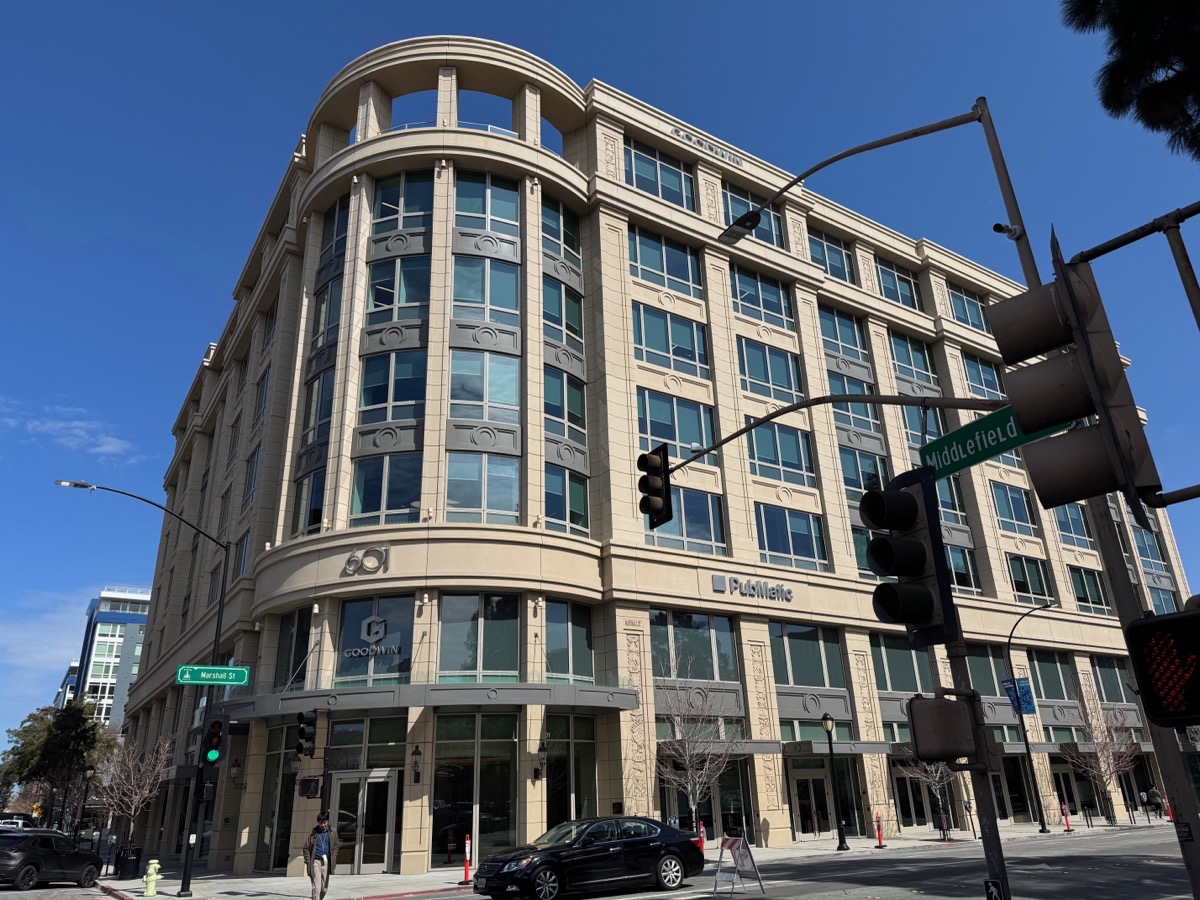 Over at 601 Marshall street, the seven-story building that stands at the corner of Marshall and Middlefield Road contains the Silicon Valley offices of Goodwin Procter, a large Boston-based law firm:
