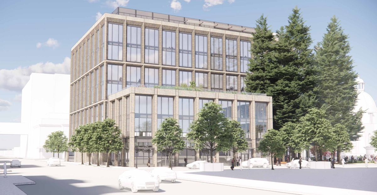 Today, 1900 Broadway is the former site of Wells Fargo Bank, which some years ago relocated to the corner of Jefferson Avenue and Broadway. The proposed project, which would involve alterations to the angled Marshall Street/Broadway connector (Spring Street) and would incorporate part of the triangular “parklet” just across that section of Spring Street, would see the construction of a seven-story mixed-use building. The building would consist primarily of office space, but would also have two nice-sized ground floor retail spaces. And, there would be an open public plaza at the Main Street/Broadway corner (shown above). Finally, a separate affordable housing building would be constructed at 847 Woodside Rd., where today there is a church operating out of a building that previously housed a mortuary. It would contain 71 affordable apartments plus a manager’s unit. An internal parking garage would have space for 57 vehicles and 86 bicycles.