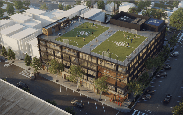 I’m including this project on the list for completeness: it was one of the original eight projects that the City Council used to guide its amendments to the city’s General Plan and its Downtown Precise Plan. But the project proposed for this site — a five-story office building with a small public-facing restaurant/cafe on the ground floor, a two-level subterranean parking garage (plus a small amount of parking on the ground floor) and, on the flat rooftop, two publicly accessible Futsal courts and a small clubhouse — was subsequently withdrawn by the developer, and thus it won’t be built. Which is too bad; as proposed it was an attractive building that made far better use of the site than what stands there today: