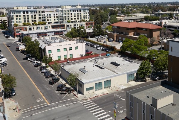 The 901 El Camino project consists of two parts. The main one is a six-story, 305,000-square-foot office building with an internal 6,500-square-foot teen center (the site, currently occupied by AutoZone, an empty frozen yogurt shop building, and a small taqueria, is located directly across the street from Sequoia High School). Then, over at 920 Shasta St., an existing self-storage operation would be replaced by a five-story affordable housing building containing 99 affordable apartments and one manager’s unit, plus a 72-space parking garage (using mechanical stackers to squeeze those 72 cars into a relatively small ground-floor garage).