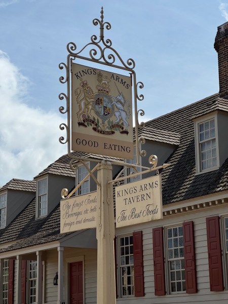 This tavern — which is a working restaurant that serves dishes made from recipes of the Colonial period — has a particularly nice sign: