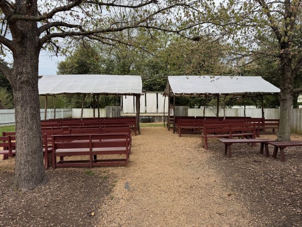 On the other side of the green is an open-air theater where short plays are put on for the enjoyment of Colonial Williamsburg’s guests: