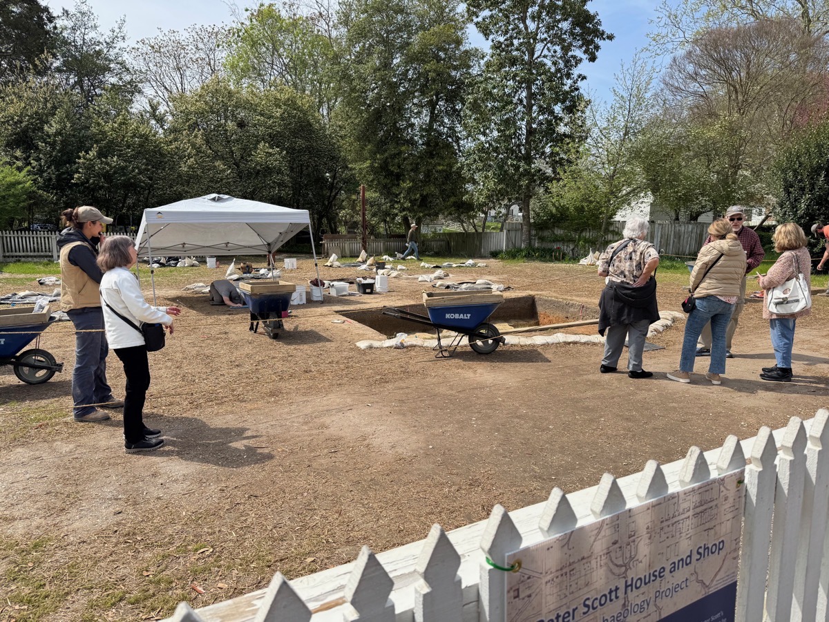 Peter Scott made fine furniture in a building on this site for 42 years. The building had originally been a rental house, constructed on this site by Martha Washington’s father-in-law from her first marriage. By the time Peter Scott passed away, in 1775, the building was being managed by Martha’s second husband, George Washington (Martha’s first husband having died in 1757). Needing a place to house some of his Continental troops, Washington put them up in the Scott house. Shortly thereafter, though, oops! The troops accidentally started a fire that completely destroyed the building. Today, the archaeologists are excavating the building’s cellar and foundations, after which they hope the Colonial Williamsburg Foundation can recreate the building that once stood on this site.