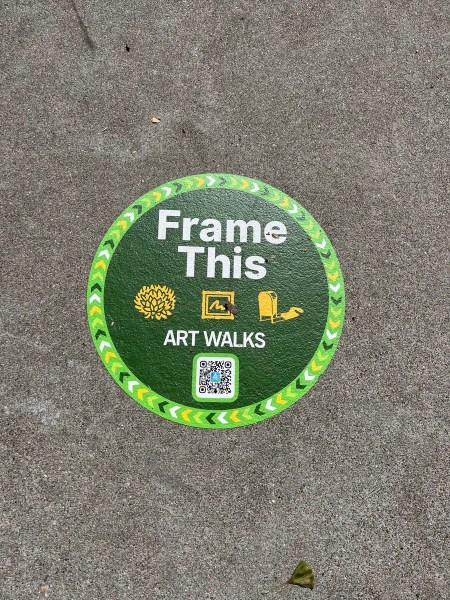 Lastly, some stickers have started appearing on the ground in downtown Redwood City (these two can be found at either end of the crosswalk across Main Street close to The Baker Next Door). One has a QR code that enables your phone to pull up a map of downtown Redwood City’s dining establishments: