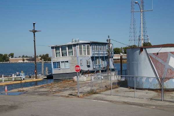 I can’t imagine that it’ll be trucked out; more likely it will be hauled up and demolished. In any case, except for a number of concrete and steel posts that stick up from the water, and for random bits of concrete that once formed part of the marina itself, no real sign remains of what once was a thriving community of floating homes.