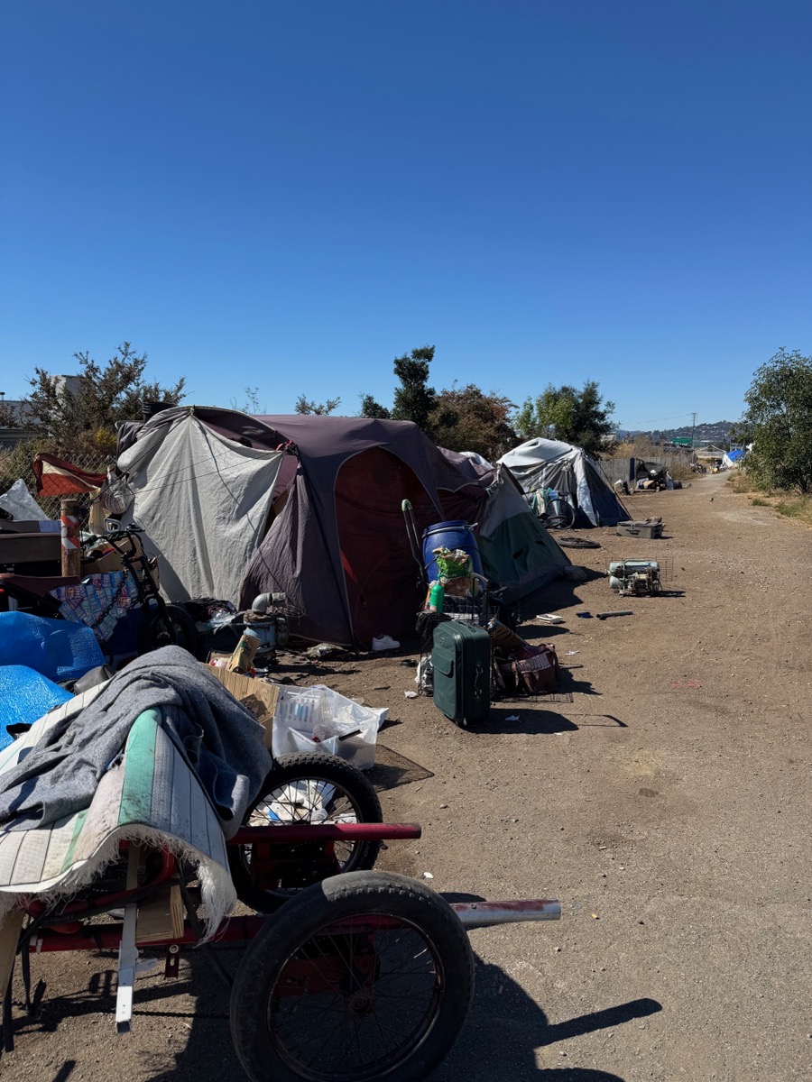 Progress is usually a positive thing: something getting built, for instance. Progress of another sort is soon to be underway just across Redwood Creek from the 557 E. Bayshore project. There, a fairly good-sized tent encampment has sprung up over the last couple of months: