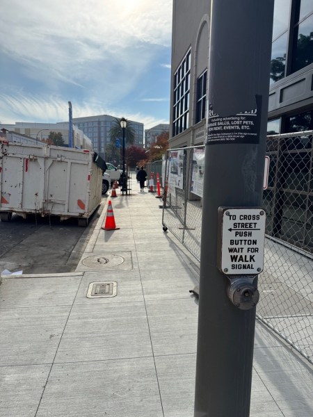 As someone who makes good use of the city’s sidewalks, I really appreciate when developers finally reach the stage where the sidewalks can be reopened to the public. Thus, I was delighted to discover that the folks behind the ELCO Yards development have finally poured asphalt to make a temporary sidewalk along the one-block section of El Camino Real that borders one of the project’s two currently empty parcels where large apartment buildings are soon to be constructed: