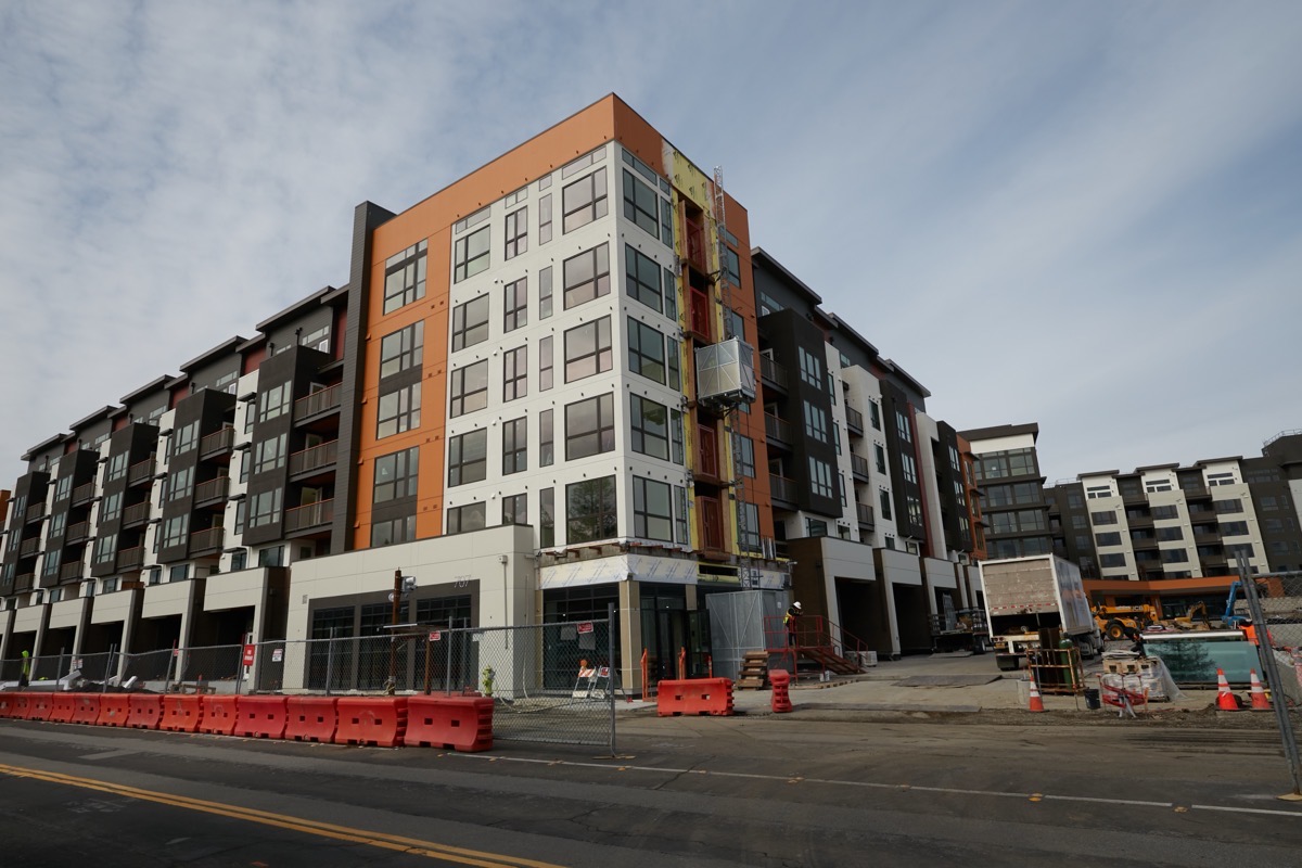 The three residential (with some retail, and a childcare center) buildings that currently make up the Broadway Village (nee Broadway Plaza) development are looking really good. You can tell they are really close by the fact that all of the signage has gone up on two of the three buildings, and that much of the construction fencing has come down. The Millton, the development’s affordable building, is the farthest along; I enjoyed a nice stroll along the sidewalk running on the Bay Road and Chestnut Street sides of the building, and everything looked neat and clean — as you’d expect of a building that is ready for occupancy but has yet to actually open its doors: