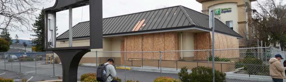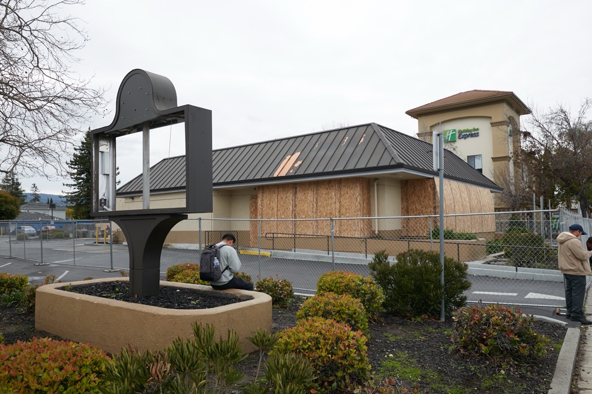 While I was away, one of my readers let me know that the Wendy’s restaurant on El Camino Real at Oak Avenue had closed. And indeed, the signage is gone and the building has been rather thoroughly boarded up: