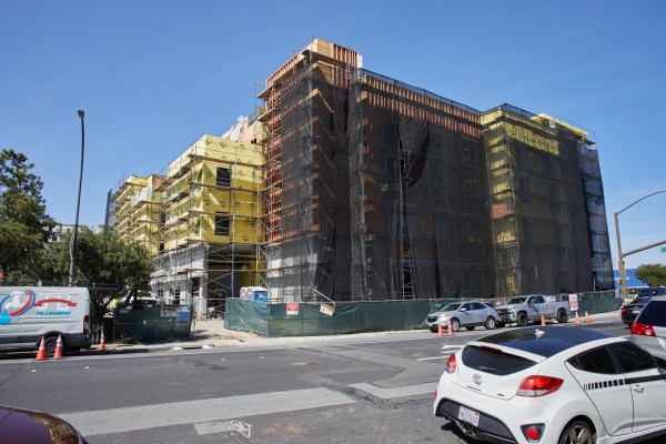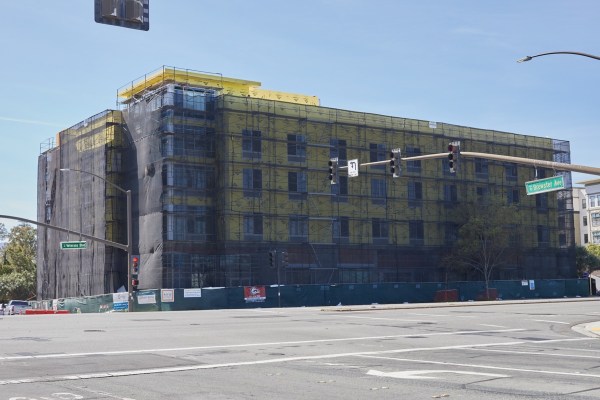 Soon the building’s exterior will be clad in a mix of stucco, metal panels, dark brick, and concrete.