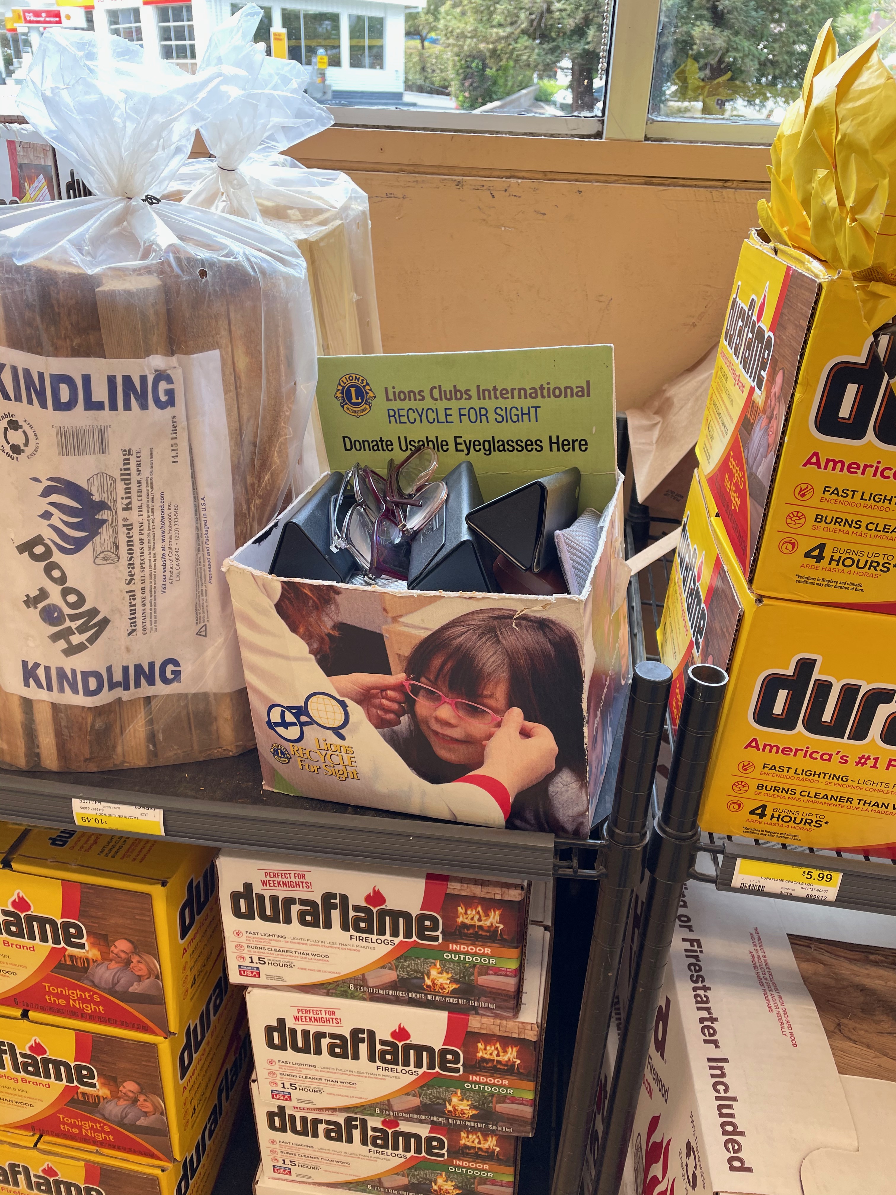Lion’s Club International has a great eyeglasses recycling program. In the past I’ve seen their cardboard bins in various places. In particular, Dehoff’s Key Market (at the corner of Roosevelt Avenue and Upton Street) has a small bin against the windows, amidst the firewood. Or, many opticians will take back eyeglasses for recycling. For instance, I understand that LensCrafters on El Camino Real in Menlo Park will take them.